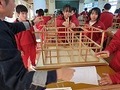 NPO法人建築・住環境研究会のみなさまを外部講師としてお招きし、3年生2クラスを対象に「じょうぶな構造や部材」について特別講座を実施しました。精巧な10分の1の組み立て住宅模型を使用して、事前に班ごとに作図した図面を基にしたモデル住宅を作成しました。素材や構造によって強度がどのくらい変化があるのか調べるために、地震を想定して模型を揺らしてテストしました。中には、1階部分が崩れた班もありましたが、これも大きな学び。実際の地震で被害にあった状況をイメージすることもできました。生徒にとって実際の作業を体験することで、多くの学びを得ることができたと思います。